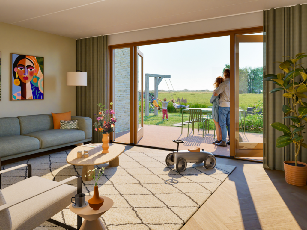 Deze sfeervolle tweekappers zijn landelijk en toch modern door de afwisseling van lichtgekleurde baksteen en de houten gevelbekleding. Wat een plaatje! Benieuwd naar de binnenkant? Wanneer je via de voordeur in de hal stapt vind je een vrijstaand toilet, de meterkast en trap naar de 1e verdieping. De leefruimte is lekker ruim met de keuken aan de voor- of achterzijde. Er zijn volop mogelijkheden om de woning uit te breiden en de woning naar jouw woonwensen in te delen. Een groen uitzicht heb je gegarandeerd! Er is ruimte genoeg voor een gezellige zithoek. Hier droom jij weg met de openslaande deur naar de tuin lekker open. Tuinspullen en fietsen kun je kwijt in de aangebouwde berging. Ideaal, want een fietstochtje maak je dagelijks in deze groene omgeving!