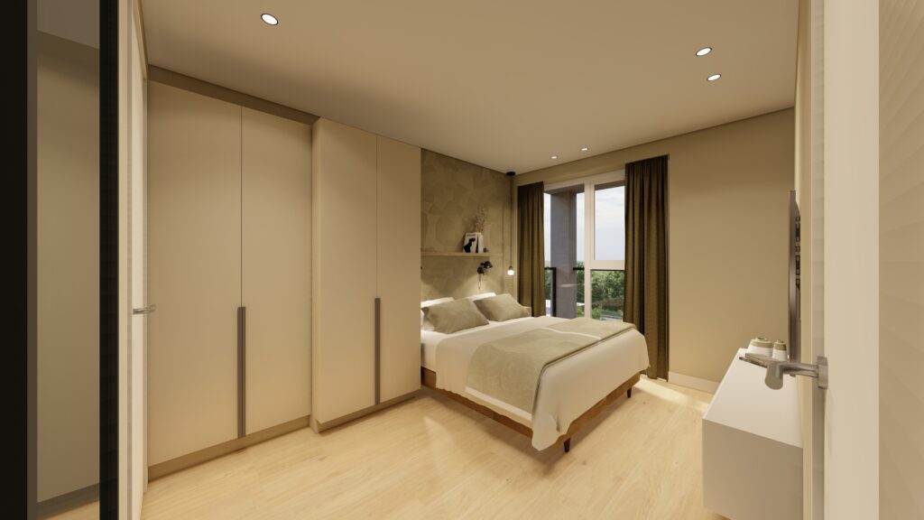 Vanuit de entree is er toegang tot alle vertrekken in het appartement. Het appartement is voorzien van een praktische inpandige berging waar de wasmachine- en drogeraansluiting zijn gepositioneerd. Hier vind je eveneens de installaties van het appartement waaronder de warmtepomp en de ventilatie unit. Door de toepassing van de warmtepomp in combinatie met zonnepanelen zijn de appartementen zeer energiezuinig. Hierdoor profiteer je van zeer lage maandlasten voor de energie. Een voordeel wat maandelijks terugkomt!