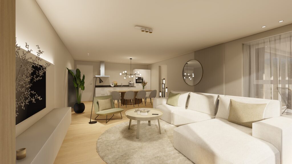 Vanuit de entree is er toegang tot alle vertrekken in het appartement. Het appartement is voorzien van een praktische inpandige berging waar de wasmachine- en drogeraansluiting zijn gepositioneerd. Hier vind je eveneens de installaties van het appartement waaronder de warmtepomp en de ventilatie unit. Door de toepassing van de warmtepomp in combinatie met zonnepanelen zijn de appartementen zeer energiezuinig. Hierdoor profiteer je van zeer lage maandlasten voor de energie. Een voordeel wat maandelijks terugkomt!