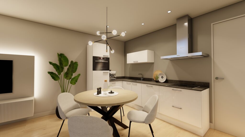 Vanuit de entree is er toegang tot alle vertrekken in het appartement. Het appartement is voorzien van een praktische inpandige berging waar de wasmachine- en drogeraansluiting zijn gepositioneerd. Hier vind je eveneens de installaties van het appartement waaronder de warmtepomp en de ventilatie unit. Door de toepassing van de warmtepomp in combinatie met zonnepanelen zijn de appartementen zeer energiezuinig. Hierdoor profiteer je van zeer lage maandlasten voor de energie. Een voordeel wat maandelijks terugkomt!