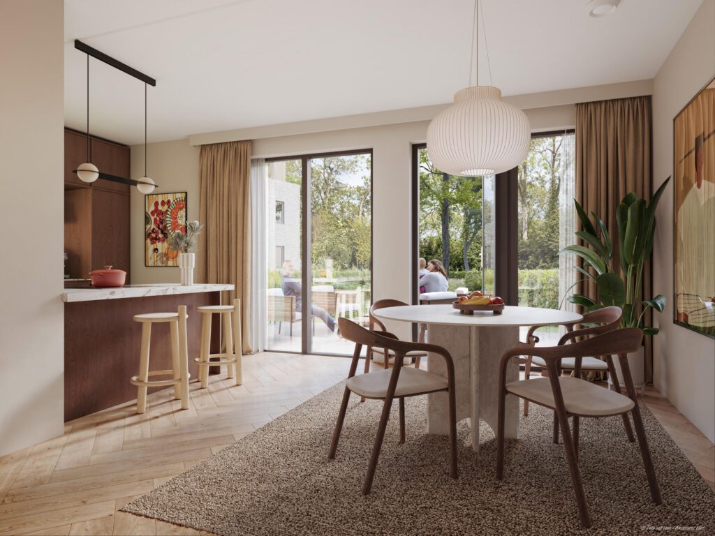 Binnen zijn de woningen licht en comfortabel. Grote ramen brengen het groen naar binnen en geven elke ruimte een open gevoel. Vanuit de hal, met een separaat toilet en trap naar boven, loop je door naar de ruime woonkamer met open keuken. De perfecte plek voor een borrel met vrienden of een gezellig diner met familie. Start je ochtend aan de lange eettafel met een kop koffie of geniet in de zithoek van een goed boek en het fijne daglicht dat binnenkomt. Elke woning heeft een fijne buitenruimte, of dat nu het terras is, de aangelegen tuin of de groene gedeelde binnentuin. In de ingebouwde berging op het terras heb je daarnaast genoeg ruimte voor al jouw tuinspullen. Zie je jezelf al zitten op je terras, genietend in het groen van de ondergaande zon?