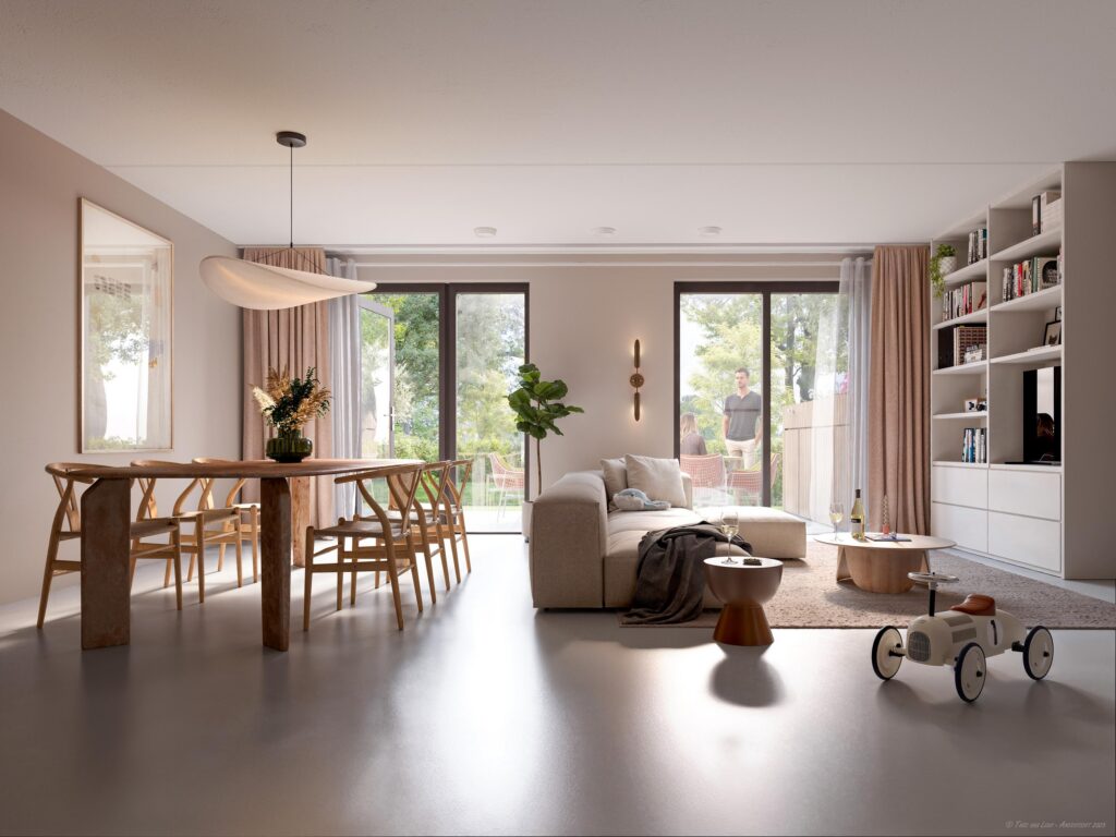 Dit is zo’n woning waar je je meteen welkom voelt. Grote ramen halen de groene omgeving naar binnen en zorgen voor een fijne sfeer, de hele dag door. De hal, met een separaat toilet en trap naar boven, brengt je naar een open en lichte leefruimte waar koken, eten en ontspannen samenkomen. Begin je ochtend met een kop koffie aan de keukentafel, ga borrelen of dineren met familie en vrienden of ontspan in de royale zithoek. Buiten heb je een eigen plek: terras met tuin en een groene gedeelde binnentuin. Een rustige plek voor jezelf of juist om vrienden uit te nodigen. Extra handig: er is een ingebouwde berging op het terras met ruimte voor al jouw tuinspullen. Hier geniet je in alle rust van de groene oase om je heen!