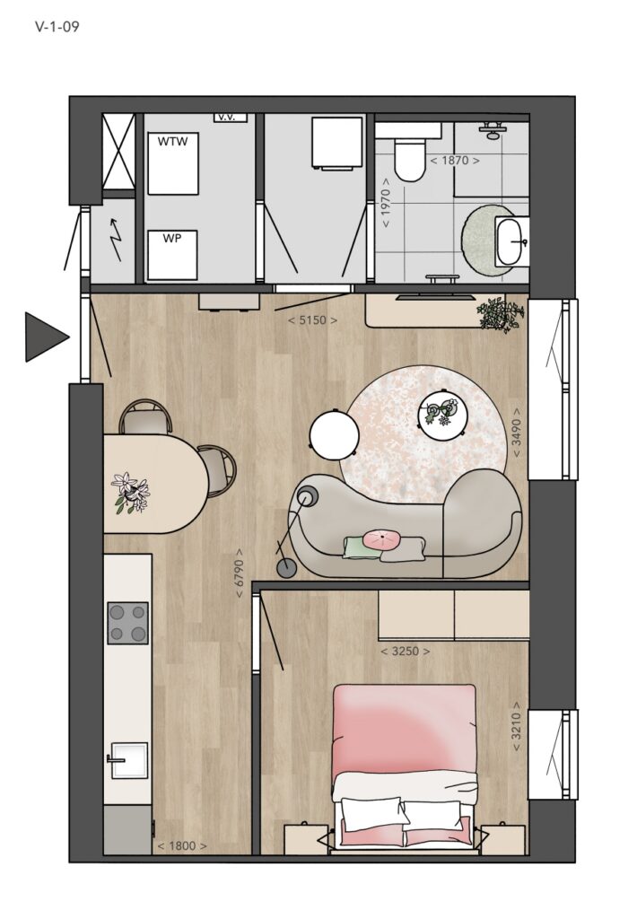 Alle Petite-appartementen in deze fase hebben een woongedeelte met open keuken, badkamer met toilet en technische ruimte voor je wasmachine en droger. Twee fietsen kun je kwijt in de gezamenlijke fietsenstalling in de kelder.