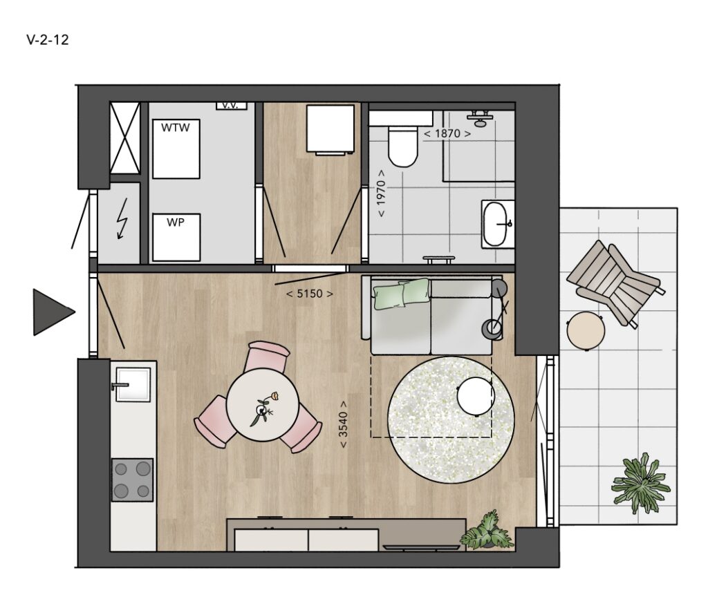 V-2-09, V-2-10, V-2-11 en V-2-12 hebben bovendien een eigen terras op het zuiden, voor als je zin hebt om in het zonnetje te zitten!
