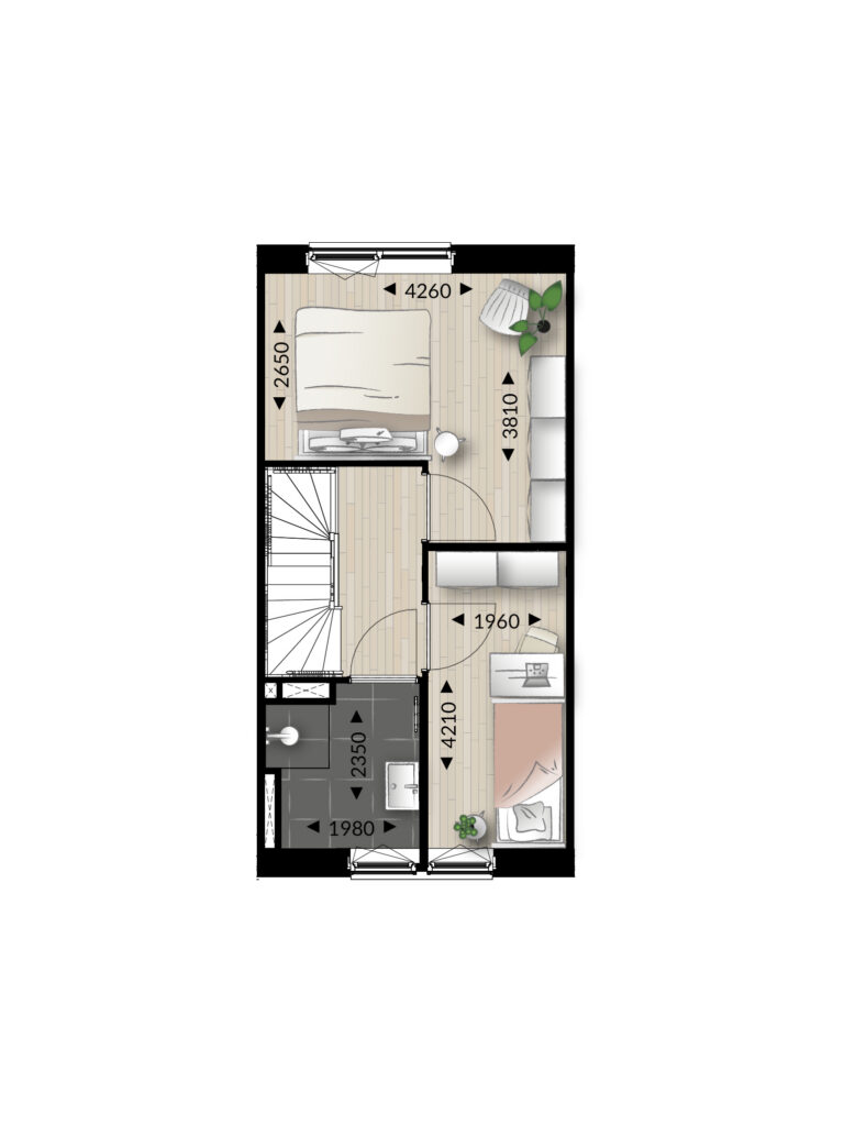 Op de eerste verdieping zijn 2 (slaap)kamers en een moderne badkamer met een inloopdouche, toilet en wastafel. Heb je een logee, wil je een rustige werkplek of gewoon wat extra ruimte voor jezelf? De open zolder is groot genoeg om precies in te richten zoals jij dat wilt. Hier vind je ook een aparte ruimte voor de technische installaties, wasmachine en droger. En je woont hier natuurlijk helemaal toekomstproof met energielabel A++++: gasloos, goed geïsoleerd en voorzien van zonnepanelen, een luchtwarmtepomp en comfortabele vloerverwarming. Hoe fijn is dat?