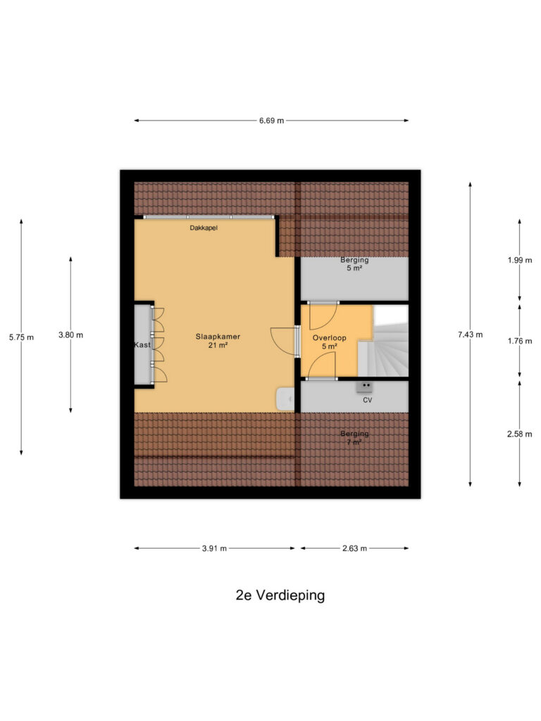 Overloop, opstelling van de cv-ketel en veel bergruimte (circa 5 en 7 m²!).