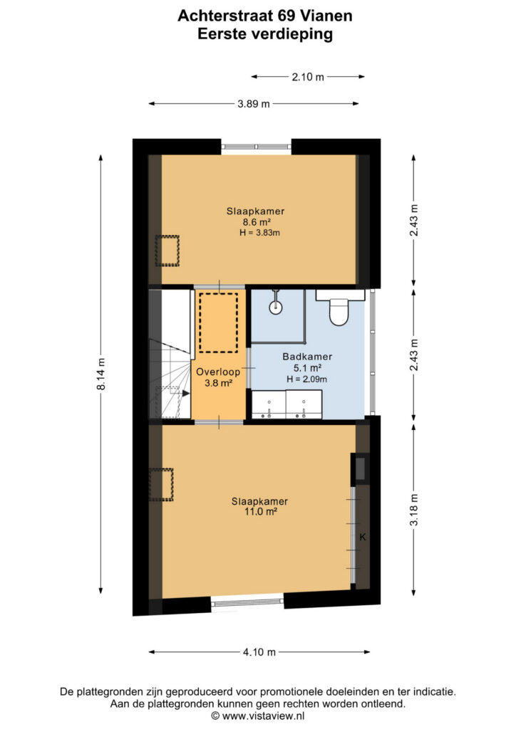 De overloop geeft toegang tot twee slaapkamers van ca. 11 en 9 m², beide met meerdere (dak)ramen en een sfeervolle uitstraling. De badkamer (ca. 5 m²) is modern en licht dankzij de dakkapel en ingericht met een inloopdouche, dubbele wastafel met meubel, toilet en wasmachineaansluiting. Op de overloop bevindt zich de vlizotrap naar de vliering met praktische opbergruimte en de cv-ketel (Vaillant, 2017).