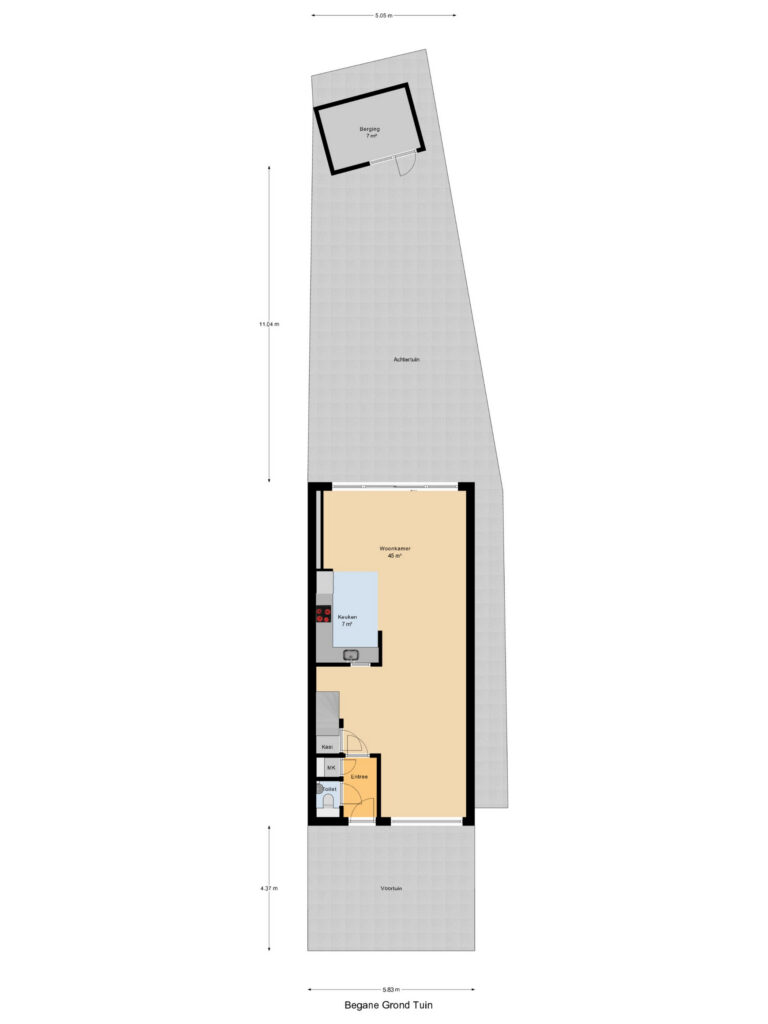De achtertuin op het oosten van circa 56 m² biedt volop ruimte om met het hele gezin te genieten van het buitenleven. Of u nu wilt loungen, spelen of gezellig wilt barbecueën, hier is het allemaal mogelijk. Daarnaast is er een praktische schuur aanwezig, voorzien van elektra – ideaal voor fietsen en extra opslag.