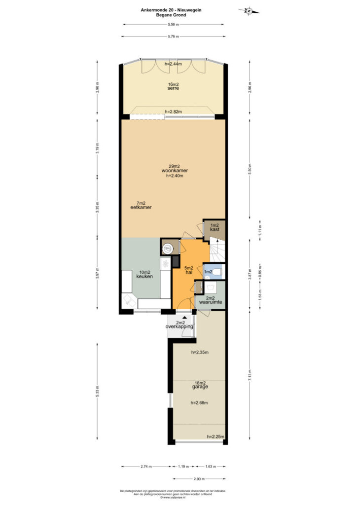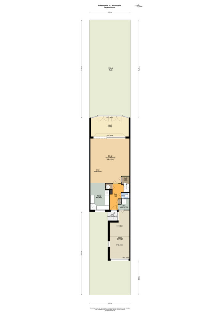 Spacious front yard with space for two cars on private property. Garage of approximately 16 m², with storage attic. between the garage and the hall is a utility room meg the washing machine connection. The meter cupboard and toilet are located in the hall. The living room is very spacious, approximately: 55 m² in size, excluding the kitchen. The kitchen is located at the front of the house and has just kitchen in U-shape. The living room is very bright because of the large windows and the skylight in the conservatory. The room has a hardwood floor, the conservatory has a tile floor.