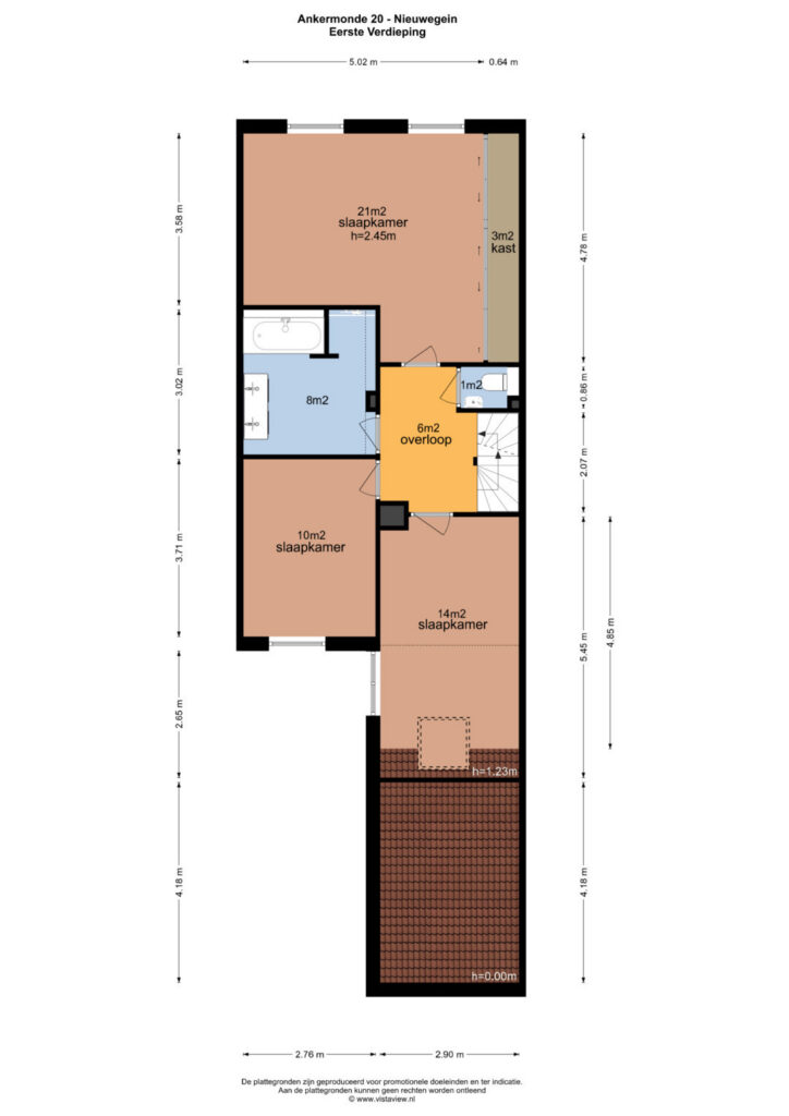 Comfortable sleeping with three spacious bedrooms of 10, 14 and 24 m² in size. The largest bedroom is located at the rear of the house and features wide closet. The bathroom is beautifully luxurious updated bathtub, a luxurious walk-in shower and a wide, double sink. Ideal is the separate toilet on the landing. All bedrooms have a beautiful wooden floor.