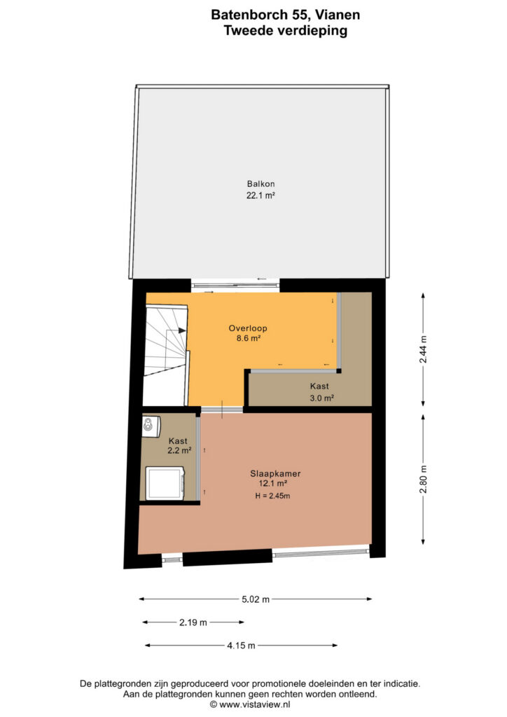De tweede verdieping bestaat uit een ruime overloop van circa 9 m² met een grote L-vormige vaste kast en een schuifpui naar het dakterras aan de achterzijde van de woning. Deze overloop fungeert als volwaardige extra ruimte en zorgt voor een prettige verbinding tussen binnen en buiten. Het dakterras is circa 22 m² groot en biedt (met wat aanpassingen) een fijne, rustige plek om buiten te kunnen zitten.