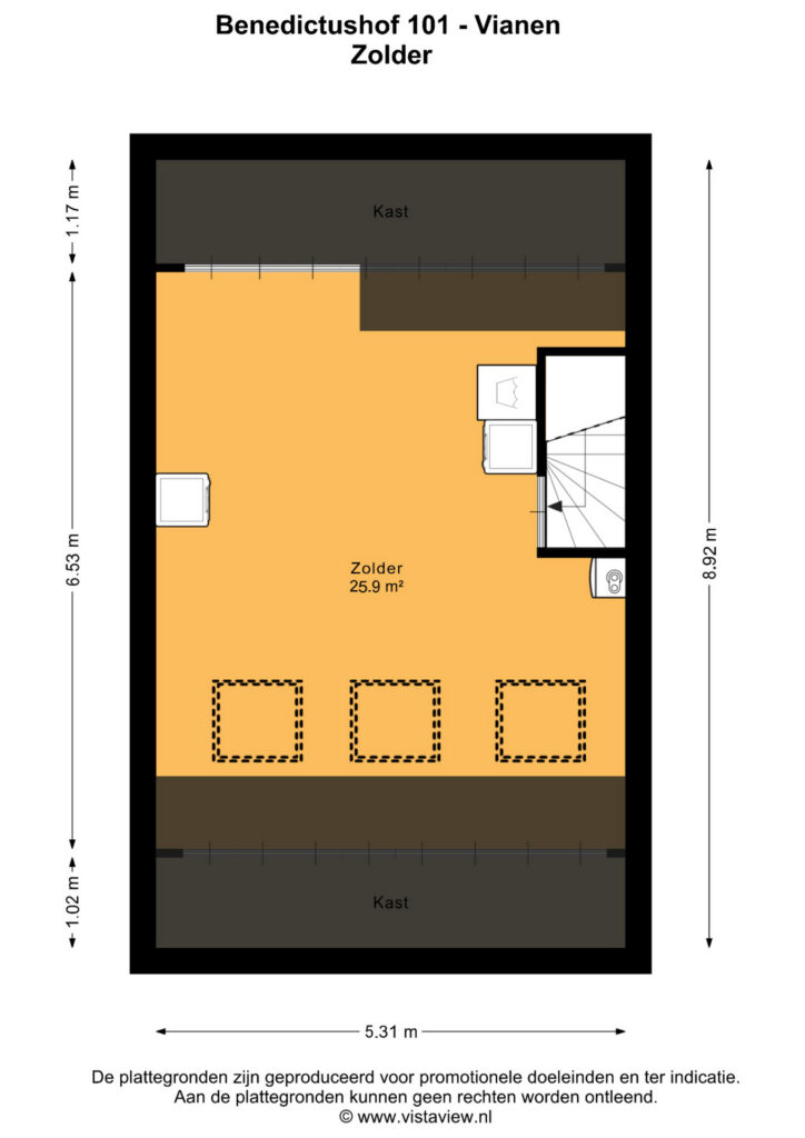 – Zolder van circa 26 m² met drie dakramen en dakkapel;