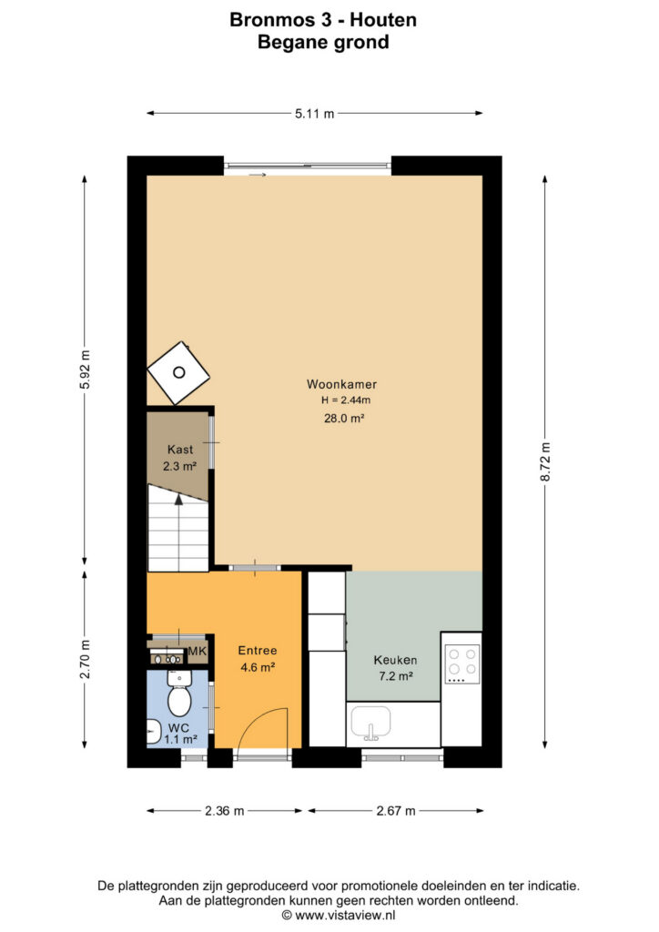Je loopt door de voortuin de woning binnen via de voordeur. De entree biedt toegang tot de toiletruimte, de meterkast en de trap naar boven, waarna je doorloopt naar de sfeervolle woonkamer. De massief houten vloer geeft het geheel karakter en warmte, terwijl de schuifpui aan de achterzijde zorgt voor een zee aan daglicht en een fijne verbinding met buiten. Daarnaast is er een praktische trapkast aanwezig voor extra bergruimte.
