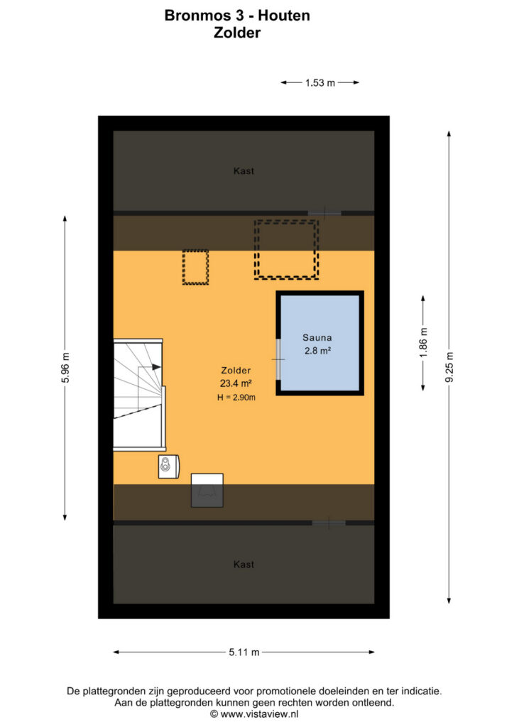 De zolderverdieping is flexibel in te delen naar jouw wensen. Momenteel vind je aan de rechterzijde de opstelling voor de wasmachine en droger, de CV-ketel en de WTW-unit. Aan de linkerzijde tref je twee dakramen dat voor veel licht zorgt. Op de zolderverdieping bevindt zich een sauna, een fijne extra die de mogelijkheid biedt om in alle rust thuis te ontspannen.