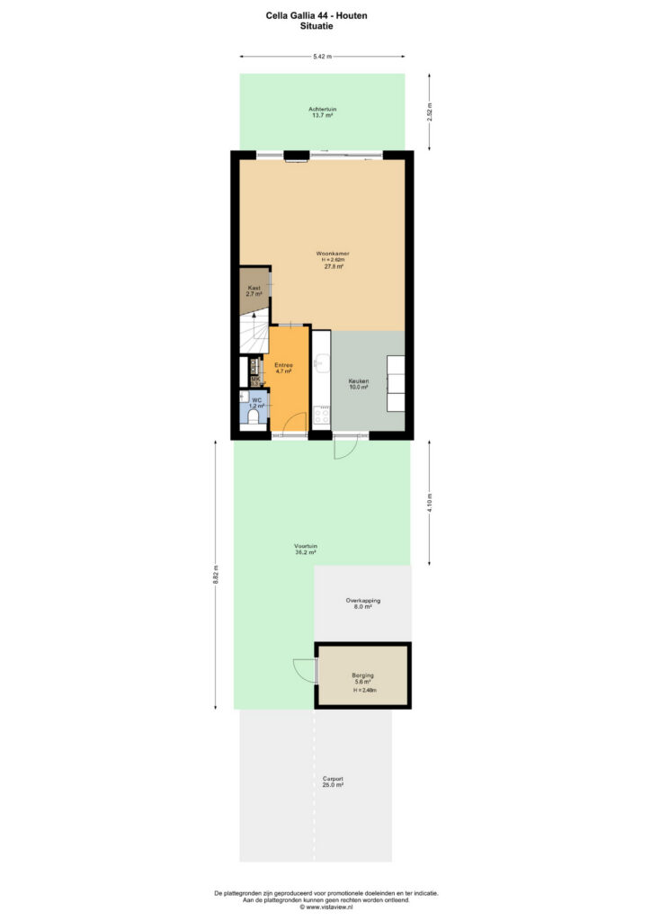 After parking your car in one of the private parking spaces, you walk through the front garden to the entrance of the house. In the front garden, there is a brick storage shed, perfect for storing bicycles and other belongings. Upon entering, you’ll find the modern tiled toilet with wall-mounted toilet and washbasin immediately to your left. Adjacent to the toilet is the meter cupboard, and next to it the staircase leading to the first floor.