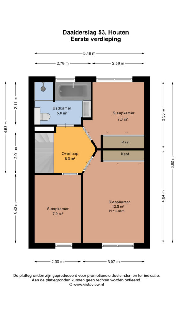 De tweede verdieping is verrassend ruim dankzij de twee dakkapellen. Hier vind je twee extra slaapkamers, ideaal als kinderkamer, werkkamer of hobbyruimte. Op de voorzolder aan de rechterzijde bevinden zich de aansluitingen voor de wasmachine en droger, evenals de cv-ketel uit 2019.