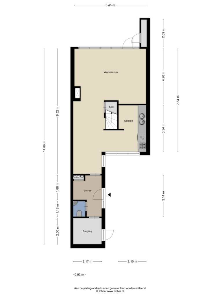 De ruime entree is uitgebouwd en voorzien van een garderobe, meterkast en een toilet met fontein. Vanuit hier is ook de aangebouwde berging bereikbaar – ideaal voor fietsen, opslag of een werkbank.
