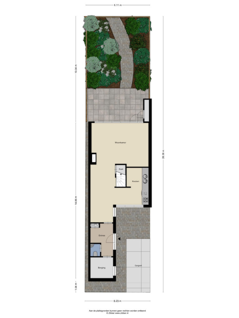 De achtertuin is grotendeels bestraat en grenst direct aan het park. Hierdoor geniet je van rust, groen en veel privacy – een heerlijke plek om te ontspannen of kinderen veilig te laten spelen. Dankzij de hoekligging is er altijd een plekje in de zon te vinden. Aan de voorzijde van de woning vind je de carport met daarachter een stenen berging.