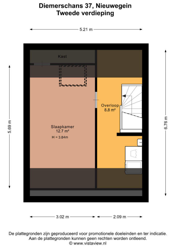Ruime overloop met veel bergruimte en de wasachine-aansluiting. grote zolderkamer van 13 m² met een hoog plafond: in de nok is deze kamer ruim 3,8 meter hoog.