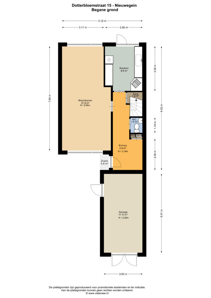 Er is de mogelijkheid te parkeren op eigen terrein. Ook is er de garage van circa 18 m² groot. Entree, hal met toilet, meterkast en toegang naar de woonkamer en keuken. De woonkamer is circa 28 m² groot en heeft veel natuurlijk lichtinval vanwege de grote raampartijen. De keuken is gesloten ten op zichte van de woonkamer en is circa 9 m² groot. Via de keuken bereik je de heerlijke tuin, gelegen op het westen. Huidige eigenaren hebben veel genoten van de grote tuin, circa 87 m² groot en voorzien van houten berging.