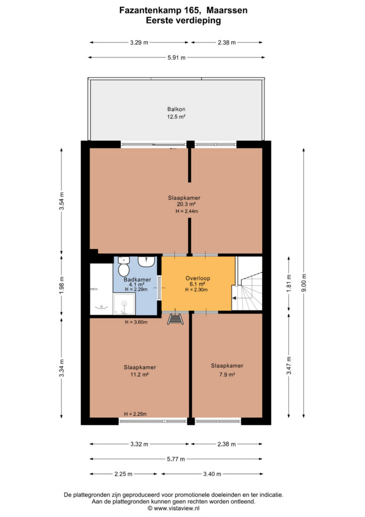 Eerste verdieping: Via de trap kom je op de overloop. De overloop biedt toegang tot maar liefst