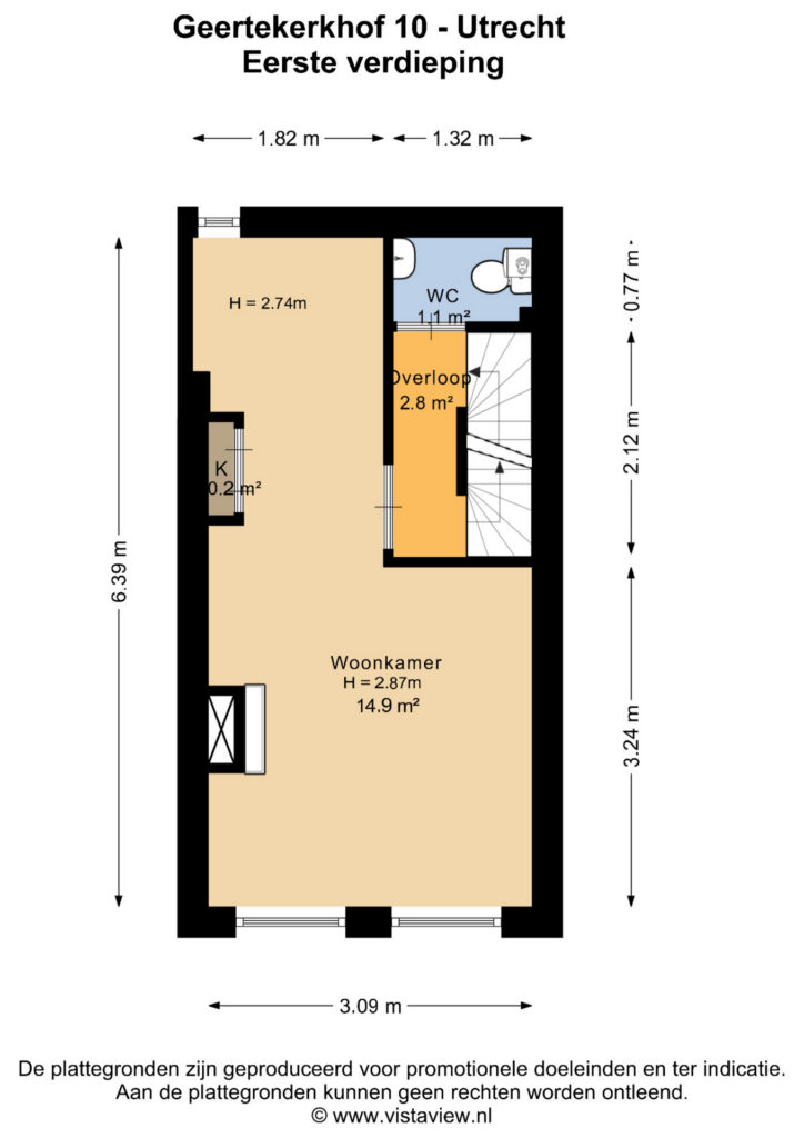 “Elke verdieping heeft een eigen fijn karakter: beneden is er het contact met de straat, op de middenverdieping is het behagelijk en zonnig met prachtig zicht op de kerktoren. Op de bovenste verdieping bevindt zich de slaapzolder met het balkenplafond, een fijne plek om te dromen en te ontwaken met het eerste zonlicht.”