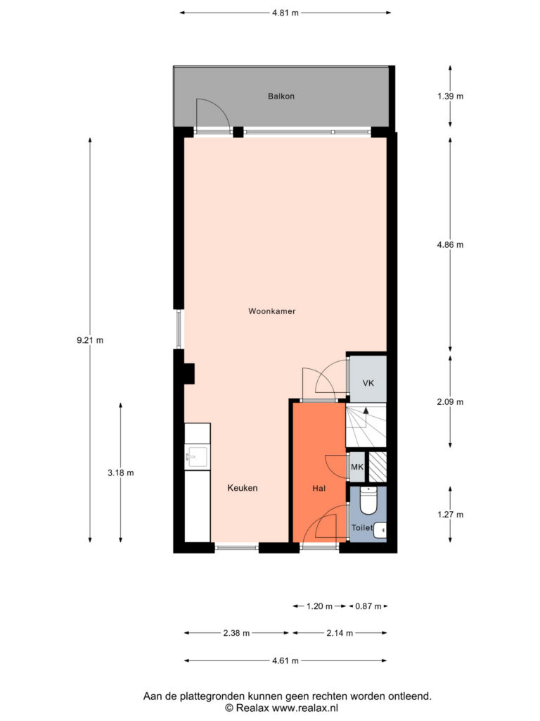 Entree, hal met meterkast, toilet en toegang naar de woonkamer en keuken. De hoeveelheid lichtinval valt direct op: er is een extra zijraam aanwezig in de woonkamer. De keuken ligt aan de voorzijde van de woning en ook hier is een groot raampartij. het balkon is circa 4 meter 81 breed. Perfect om van buiten te genieten.