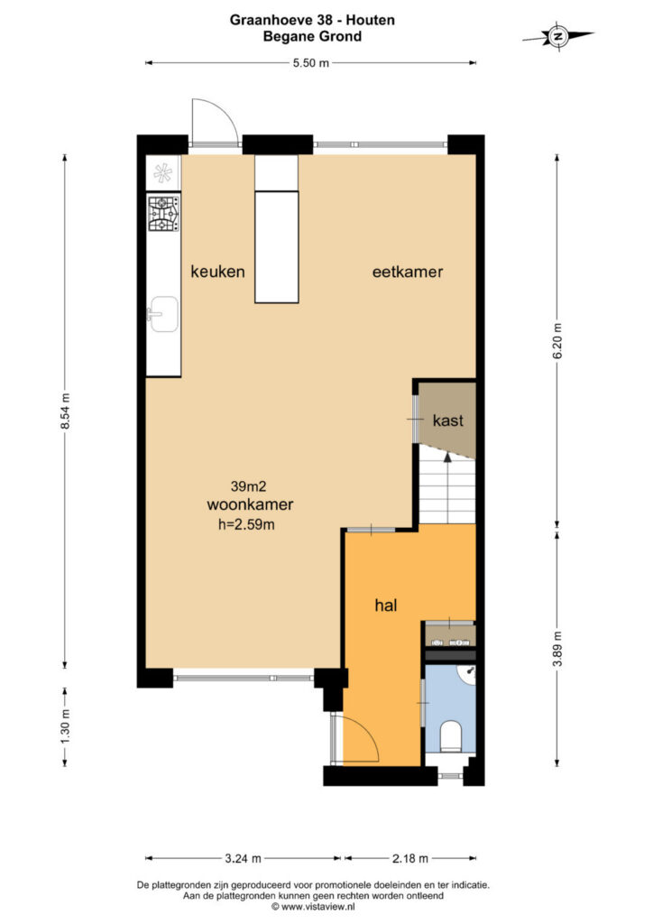 Nadat je de auto hebt geparkeerd op de openbare parkeerplaatsen loop je rechtstreeks via de achtertuin de woning binnen. Aan de voorzijde van de woning bevindt zich een fietspad en loop je via de voordeur de woning binnen. Wanneer je de woning binnen loopt, tref je meteen de toiletruimte met hangend toilet en fontein. Aangrenzend bevindt zich de meterkast en verder vind je bij de entree de trapopgang naar de eerste verdieping. Vervolgens loop je de woonkamer binnen en tref je direct aan de rechterzijde de trapkast. De keuken bevindt zich aan de achterzijde van de woning, ziet er netjes uit en beschikt over de benodigde uitgebreide inbouwapparatuur.