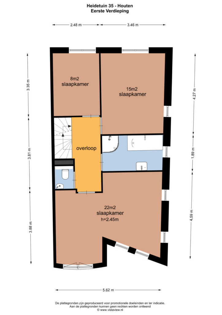 Tweede verdieping: Via een vaste trap bereik je de verrassend ruime tweede verdieping. Op de overloop bevindt zich een separate technische ruimte met de c.v.-installatie (2024) en de opstelling voor de wasmachine en droger. Daarnaast beschikt deze verdieping over een royale vierde slaapkamer, die zich uitstekend leent als volwaardige slaapkamer, werkkamer of hobbyruimte. Dankzij de ruimte en het licht is dit een comfortabele en veelzijdige verdieping die het woonoppervlak compleet maakt.