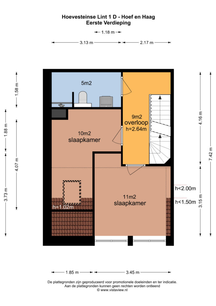 – Zolderverdieping ca. 12 m² mag niet worden meegerekend in de woonoppervlakte i.v.m. te weinig daglichttoetreding, maar is wel degelijk bruikbaar;
