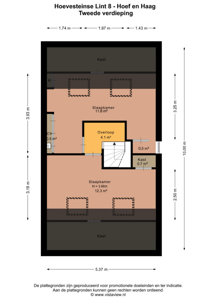 In 2019 is de tweede verdieping verbouwd, waarbij twee volwaardige slaapkamers zijn gerealiseerd van elk circa 12 m². Beide kamers beschikken over meerdere grote dakramen, vaste kastruimte en een prettig lichtinval. Dankzij de nokhoogte van ruim 3,6 meter voelt deze verdieping extra ruim aan.