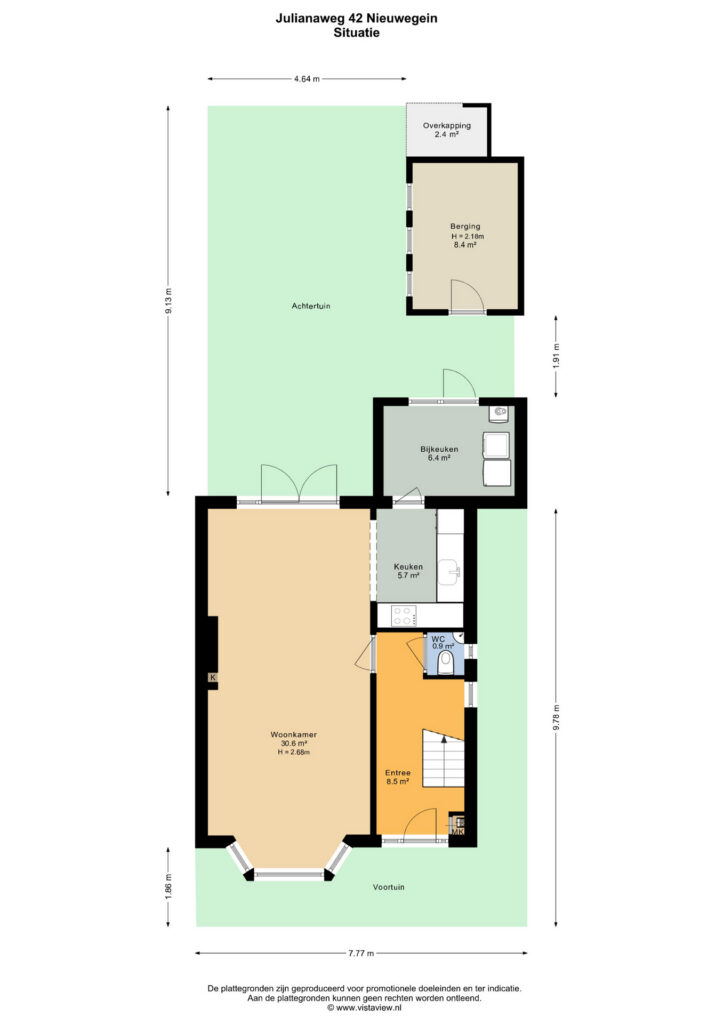 De zonnige tuin op het zuidoosten biedt volop privacy en grenst aan een rustig grasveld. Hier geniet je van rust, ruimte en groen, met voldoende parkeergelegenheid direct achter de woning.