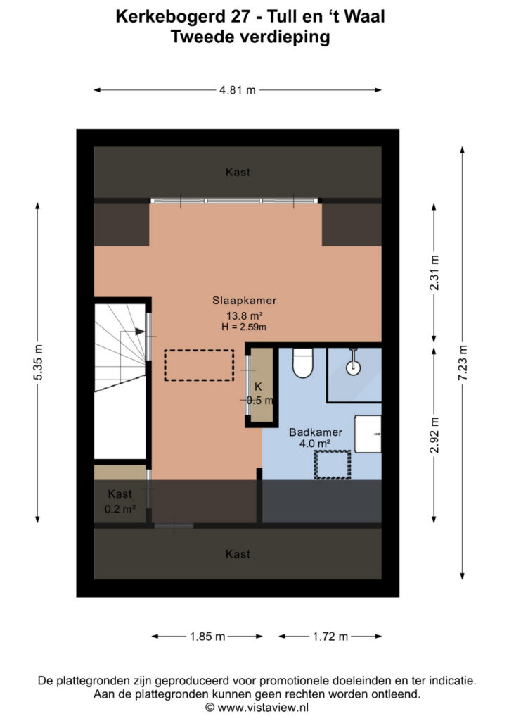 Via een vaste trap kom je op de tweede verdieping, waar je ook hier direct de ruimte en lichtinval van een dakkapel ervaart. Deze verdieping biedt veel extra ruimte, zowel voor opslag als voor een extra werk- of hobbyruimte of natuurlijk voor een vierde slaapkamer met volop privacy. In deze ruimte bevinden zich tevens de CV-installatie en een separate badkamer, voorzien van een douche, een derde toilet en een vaste wastafel. Ook is er een praktische bergvliering aanwezig voor nog meer opslagruimte.