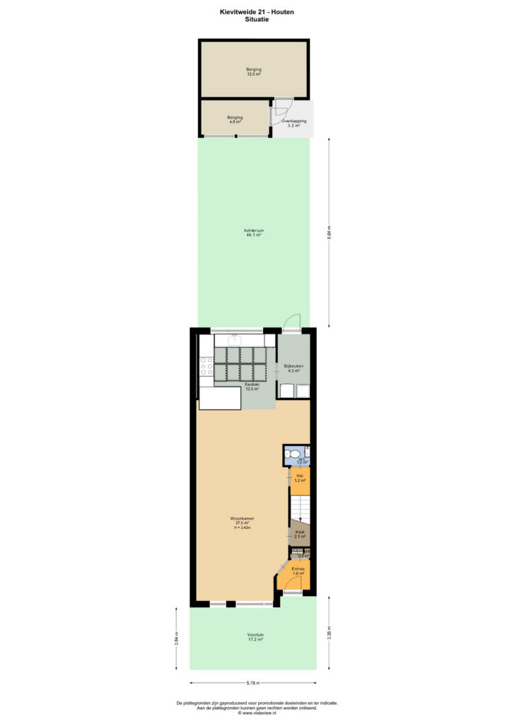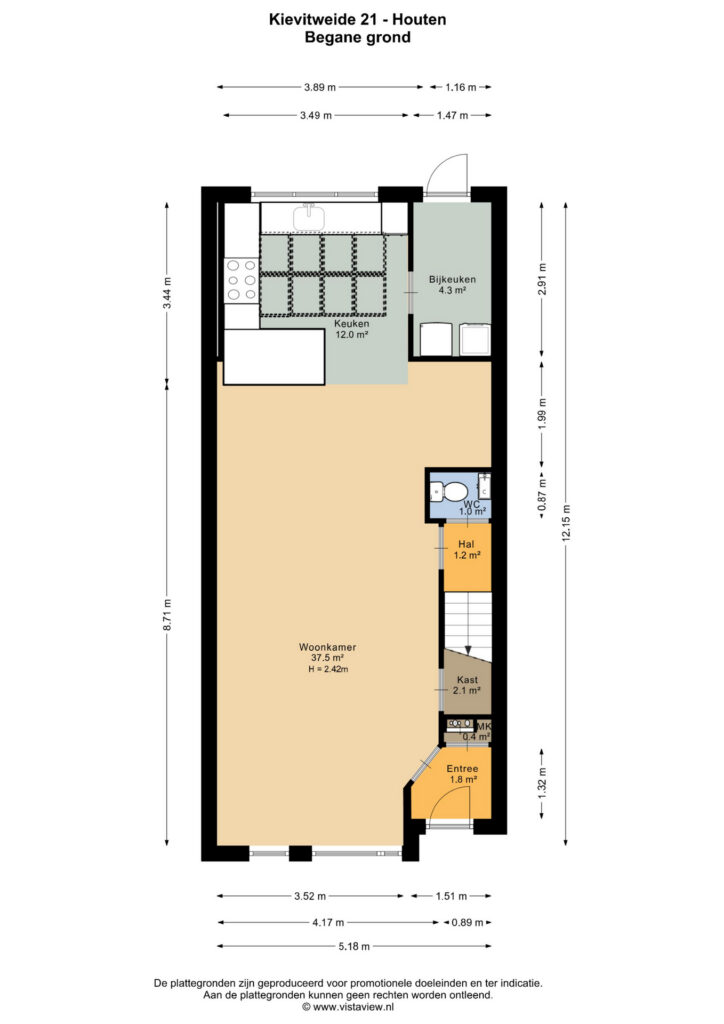 – Handige bijkeuken voor extra bergruimte of als wasruimte.