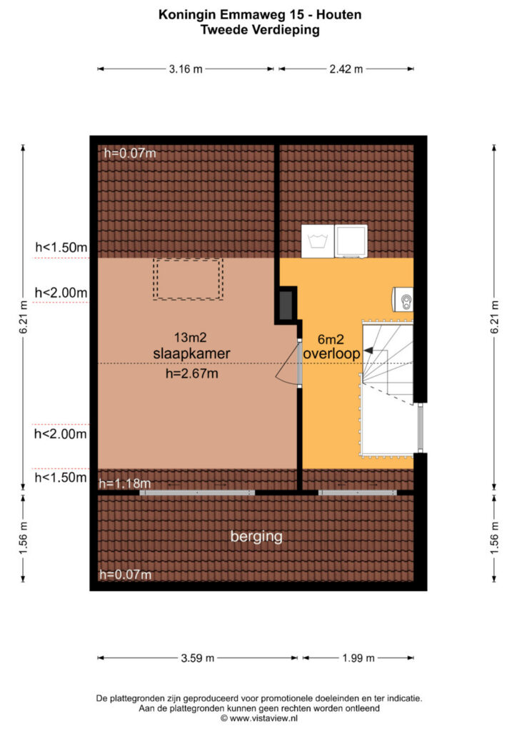 2e verdieping: Via een vaste trap bereik je de voorzolder, waar de opstelling van de wasapparatuur en de cv-installatie zich bevindt. Hier bevindt zich ook de riante vierde slaapkamer. Met de mogelijkheid om één of twee dakkapellen toe te voegen, kan deze verdieping eenvoudig worden vergroot, zodat je nog meer ruimte kunt creëren.