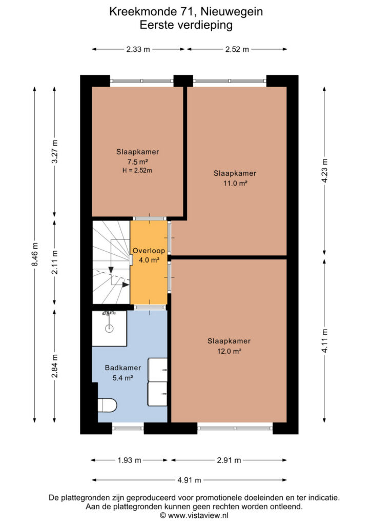 Overloop, drie slaapkamers van respectievelijk 8, 11 en 12 m². De prachtige badkamer is recent volledig verbouwd en met veel smaak ingericht, met mooie kleuren en materialen. De badkamer beschikt over een ruime inloopdouche, dubbele wastafel en een tweede toilet.