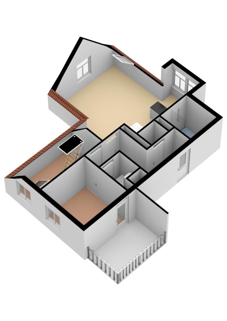 Derde verdieping: Bij binnenkomst tref je de Z-vormige hal, die toegang biedt tot alle vertrekken van het appartement. In de hal bevindt zich een ruime bergkast met aansluiting voor de wasmachine en de cv-ketel. Vanuit de entree zijn tevens het separate toilet en de badkamer bereikbaar. De badkamer is modern uitgevoerd en voorzien van een inloopdouche en een stijlvol wastafelmeubel.