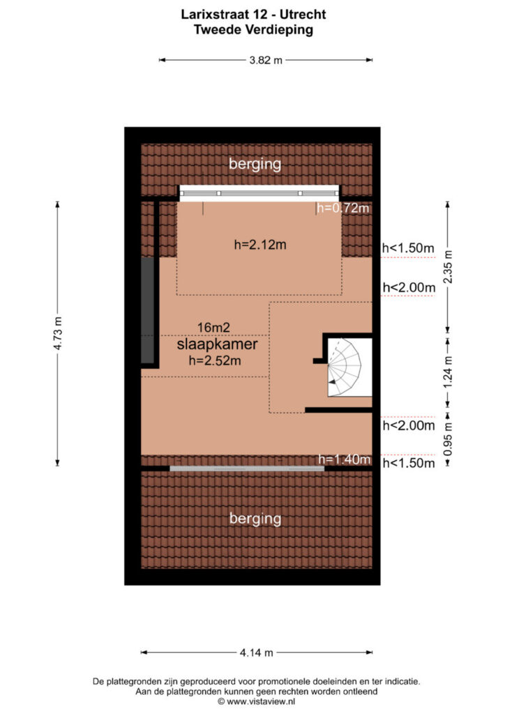 De tweede verdieping herbergt een royale zolderkamer met een dakkapel aan de achterzijde, waardoor ook hier veel daglicht binnenvalt. Onder de schuine kap is volop bergruimte aanwezig, ideaal voor het opbergen van je spullen.