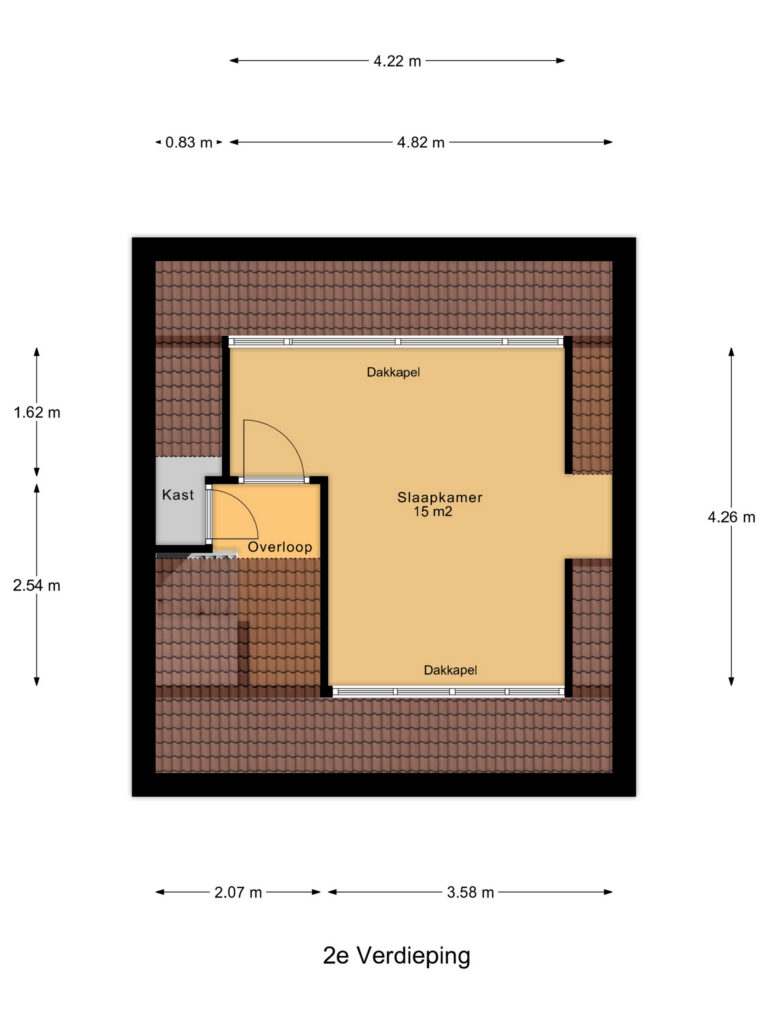 Nog een slaapkamer van circa 15 m² groot. Door de geplaatste dakkapel(len) is het hier comfortabel slapen. Ook hier is sprake van een strakke wandafwerking en een strak plafond.