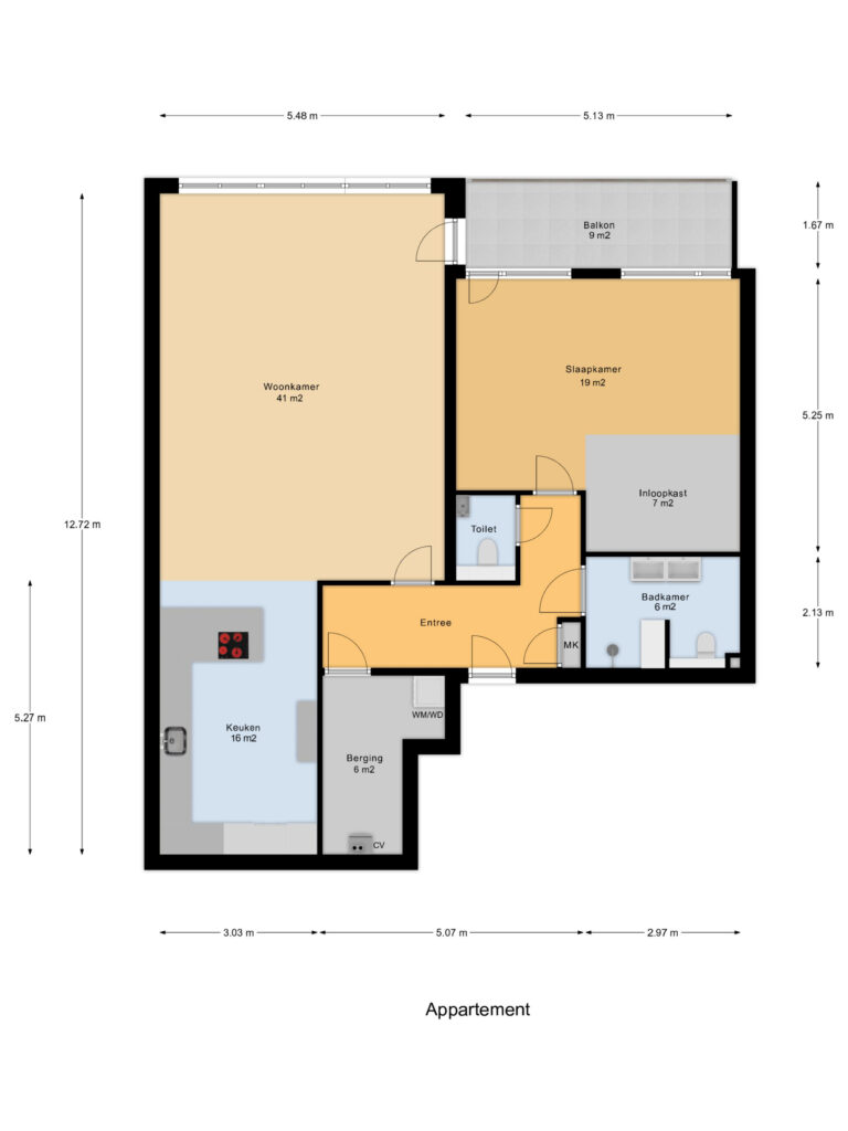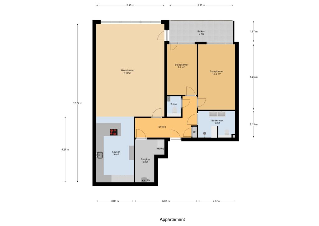 Er is een moderne gastentoilet met fontein. Het volledige appartement is voorzien van vloerverwarming en per ruimte instelbaar.