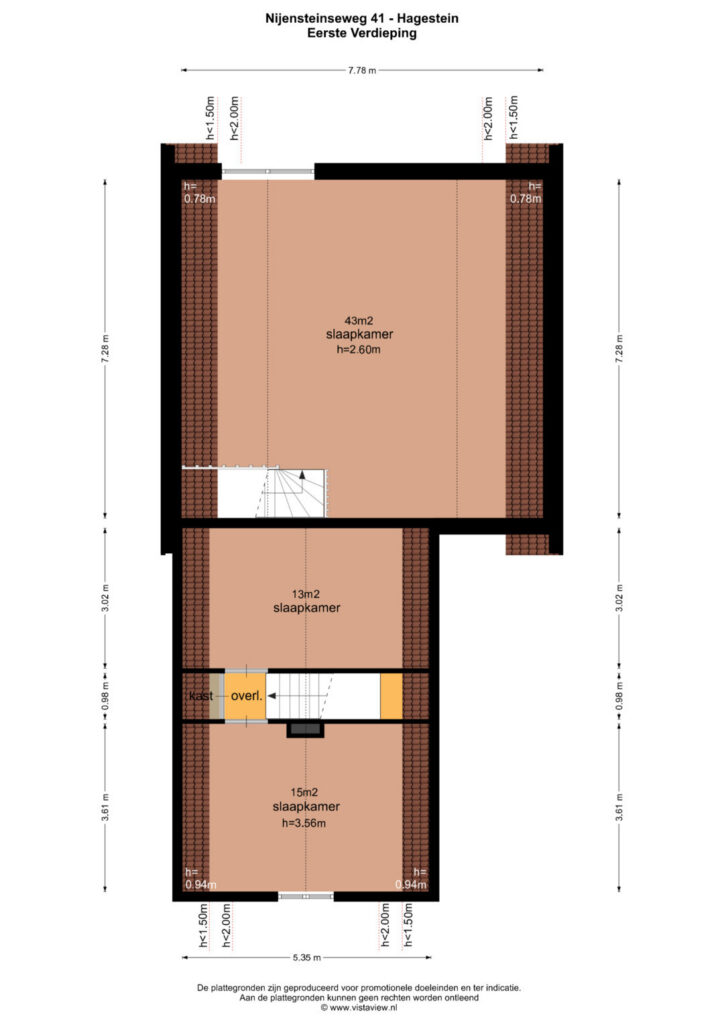 Via de trapopgang in het voorhuis bereik je de eerste verdieping. Hier bevinden zich twee slaapkamers.
