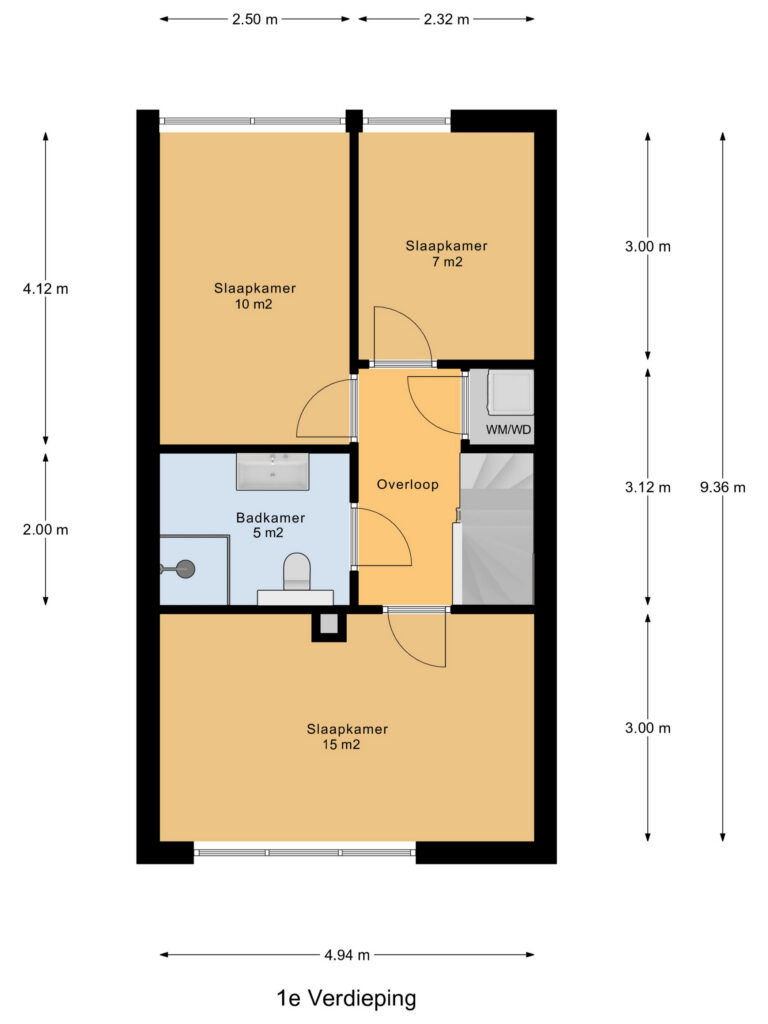 Drie royale slaapkamers van circa 7, 10 en 15 m² groot. De grote slaapkamer ligt aan de voorzijde van de woning. De badkamer ligt in het midden en is circa 5 m² groot. In 2020 in de badkamer keurig vernieuwd. De badkamer is betegeld met grote stijlvolle grijze tegels. Het plafond is strak en voorzien van inbouwspots. Er is een douche, wastafel en modern toilet in de badkamer.