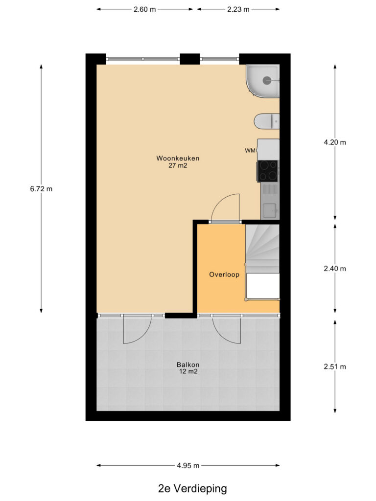 Multifunctionele ruimte. Deze verdieping is te gebruiken als slaapkamer, werkkamer of logeerkamer. Er is een klein keukenblok met water aanwezig, een sanibroyeur en een douche. Extra leuk aan deze verdieping is het grote dakterras van circa 12 m² groot.