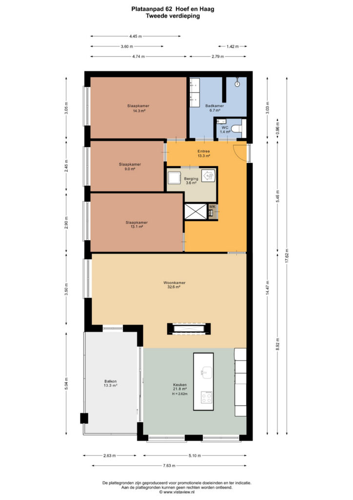 Modern and bright apartment of 121 m² with three bedrooms, balcony, and private parking, located in one of the most beautiful areas of Hoef en Haag.