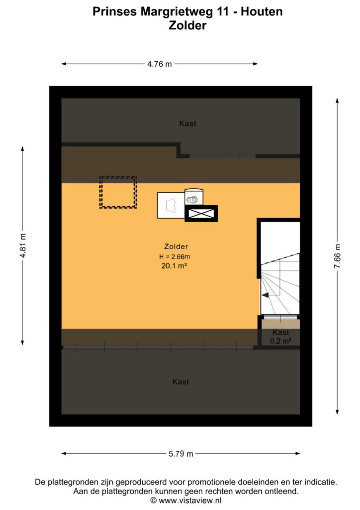 Via een vaste trap bereik je de tweede verdieping: een royale zolderruimte met dakraam, waar je eenvoudig een vierde slaapkamer, werkkamer of hobbyruimte kunt realiseren. Hier bevinden zich ook de aansluitingen voor wasmachine en droger en de c.v.-installatie.
