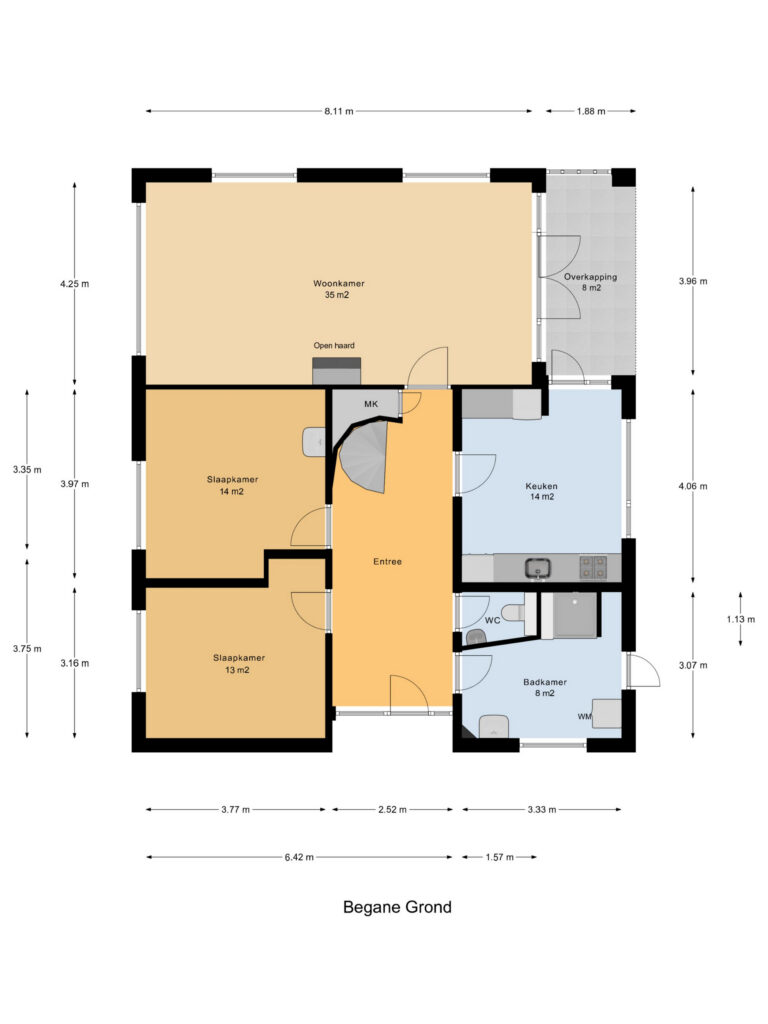 De woning onderscheidt zich door de veelzijdige indeling. Op de begane grond bevinden zich twee slaapkamers, een badkamer en een dichte keuken. Hierdoor is gelijkvloers wonen uitstekend mogelijk. Daarnaast biedt de indeling volop kansen om de woning geheel naar eigen wens aan te passen: zo kan de woonkamer eenvoudig worden vergroot door een slaapkamer erbij te betrekken en is het mogelijk om een (half)open keuken te realiseren.