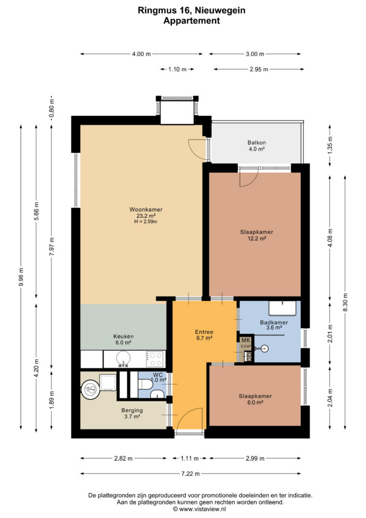– Twee slaapkamers;