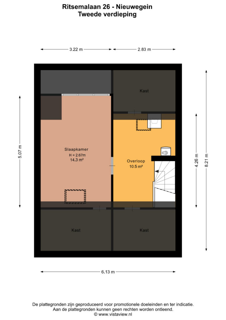 Op de eerste verdieping bevinden zich drie ruim bemeten kamers. De tweede verdieping biedt veel bergruimte en beschikt over een grote slaapkamer met dakkapel.