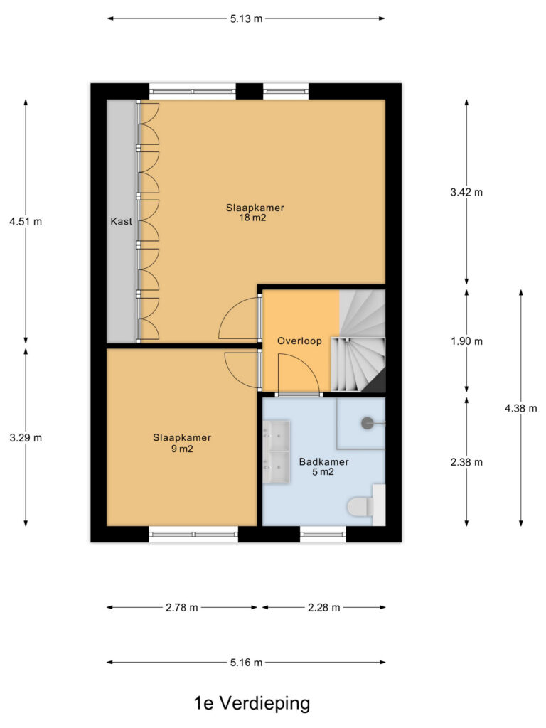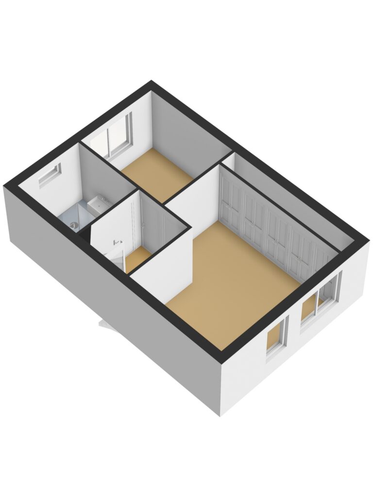 Overloop, twee slaapkamers van respectievelijk 18 en 9 m² groot. De grootste slaapkamer is een samenvoeging van twee kamers. De oorspronkelijke indeling is eenvoudig weer terug te brengen. Alle ruimtes zijn bijzonder goed en netjes afgewerkt.
