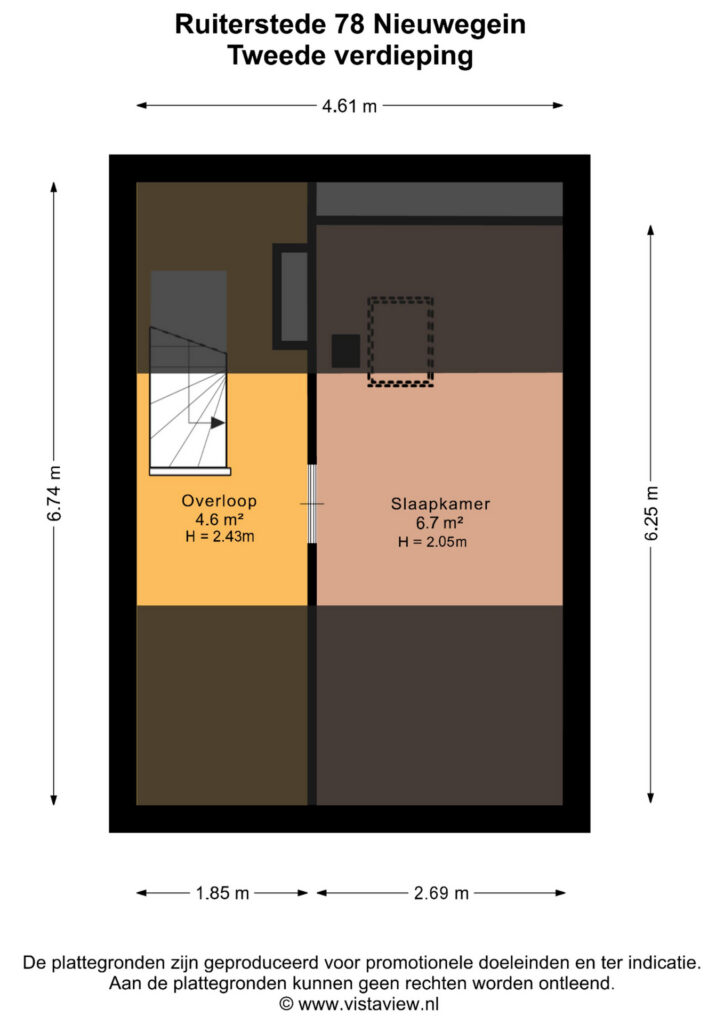 De tweede verdieping biedt een overloop en een vierde slaapkamer (ca. 6,7 m²). Deze kamer is voorzien van veel bergruimte onder de schuine kanten en is ideaal als werk-, hobby- of logeerkamer.
